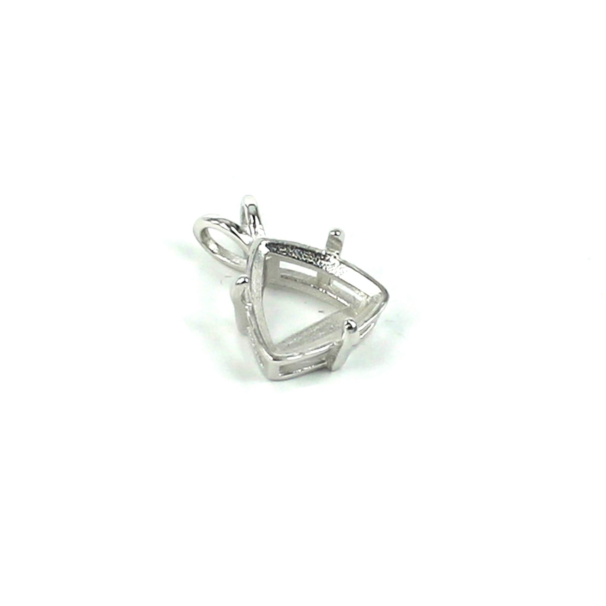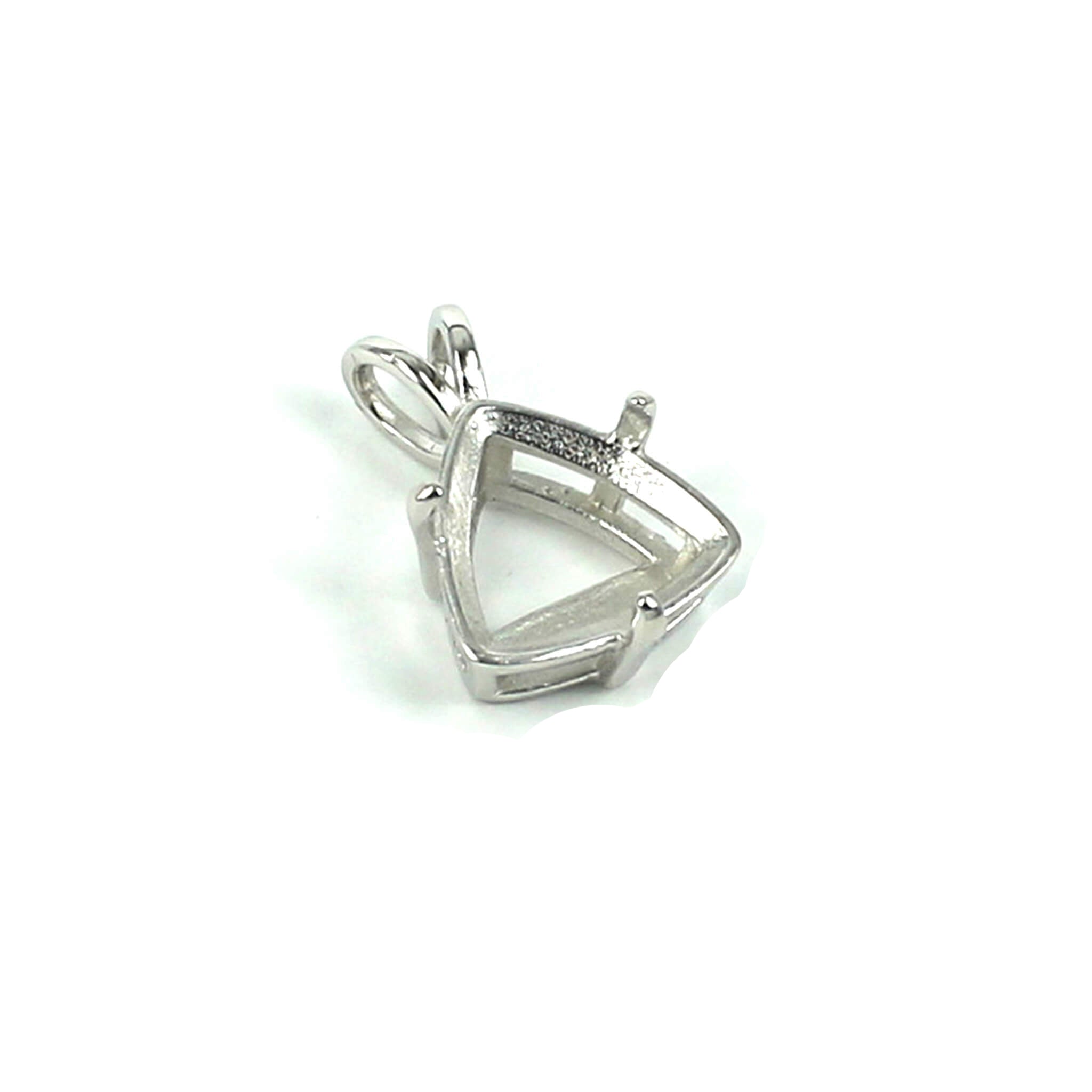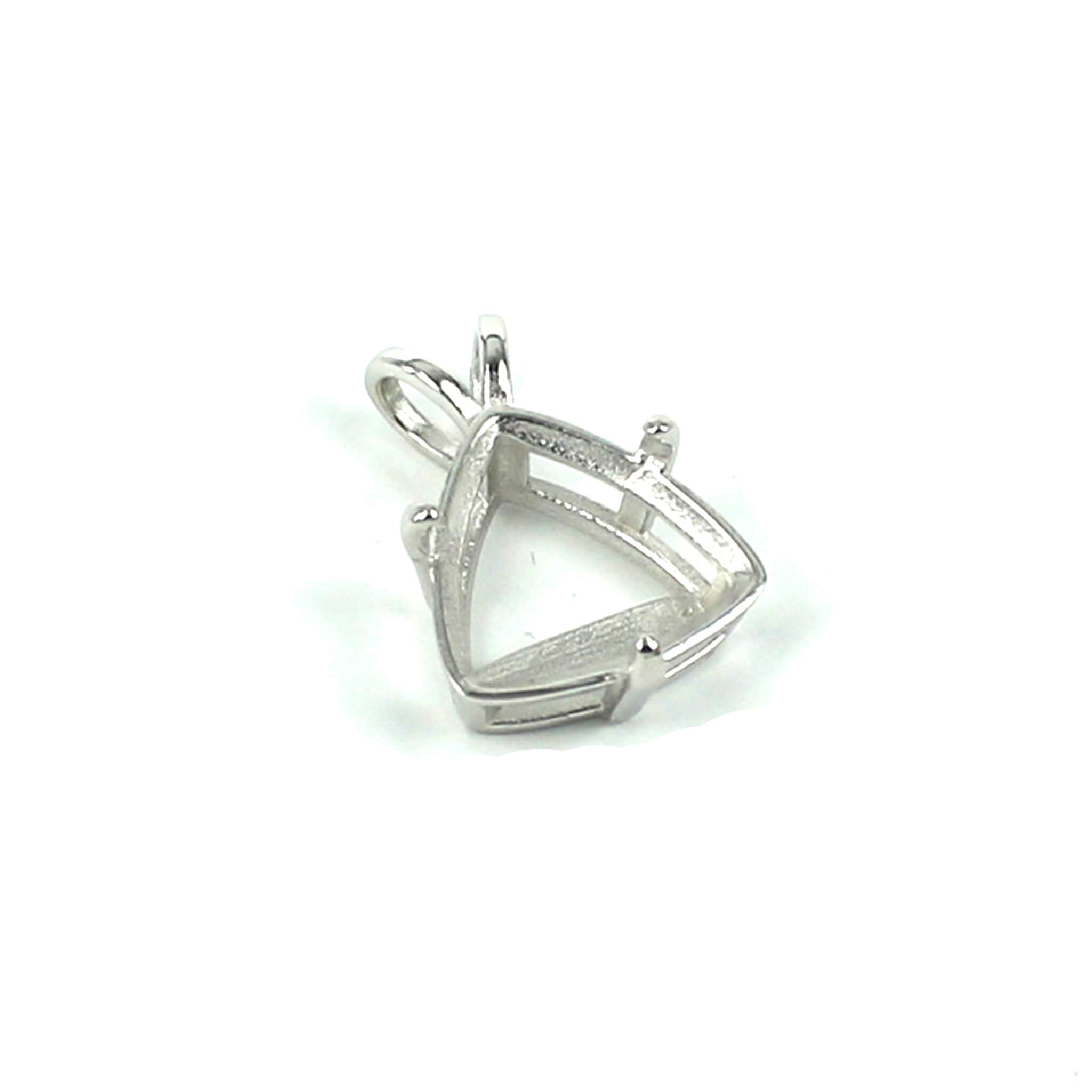 The sterling silver pendant pearl setting has a stylish and smooth triangular basket shape with a deep triangular shape mounting and 3 prongs onto which you can set a triangular shape stone. It features a double loop. It is a popular choice for many jewelers, jewelry designers and artists to add beautiful and a true statement piece to their designs.