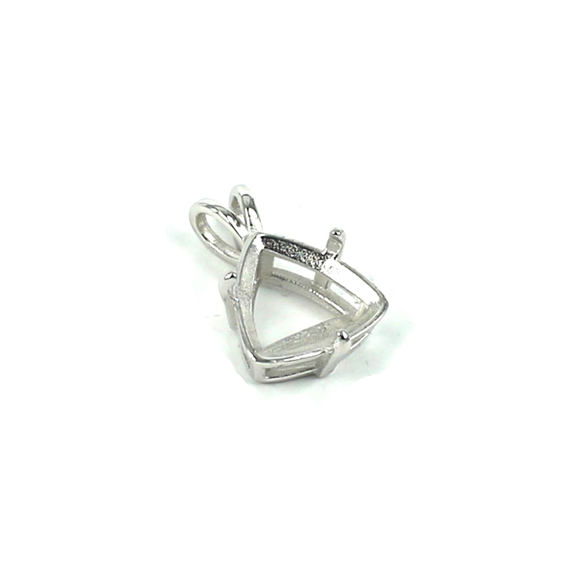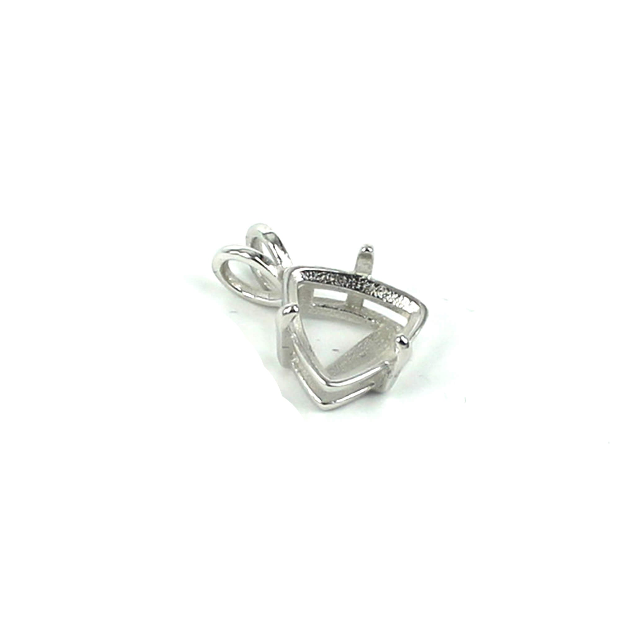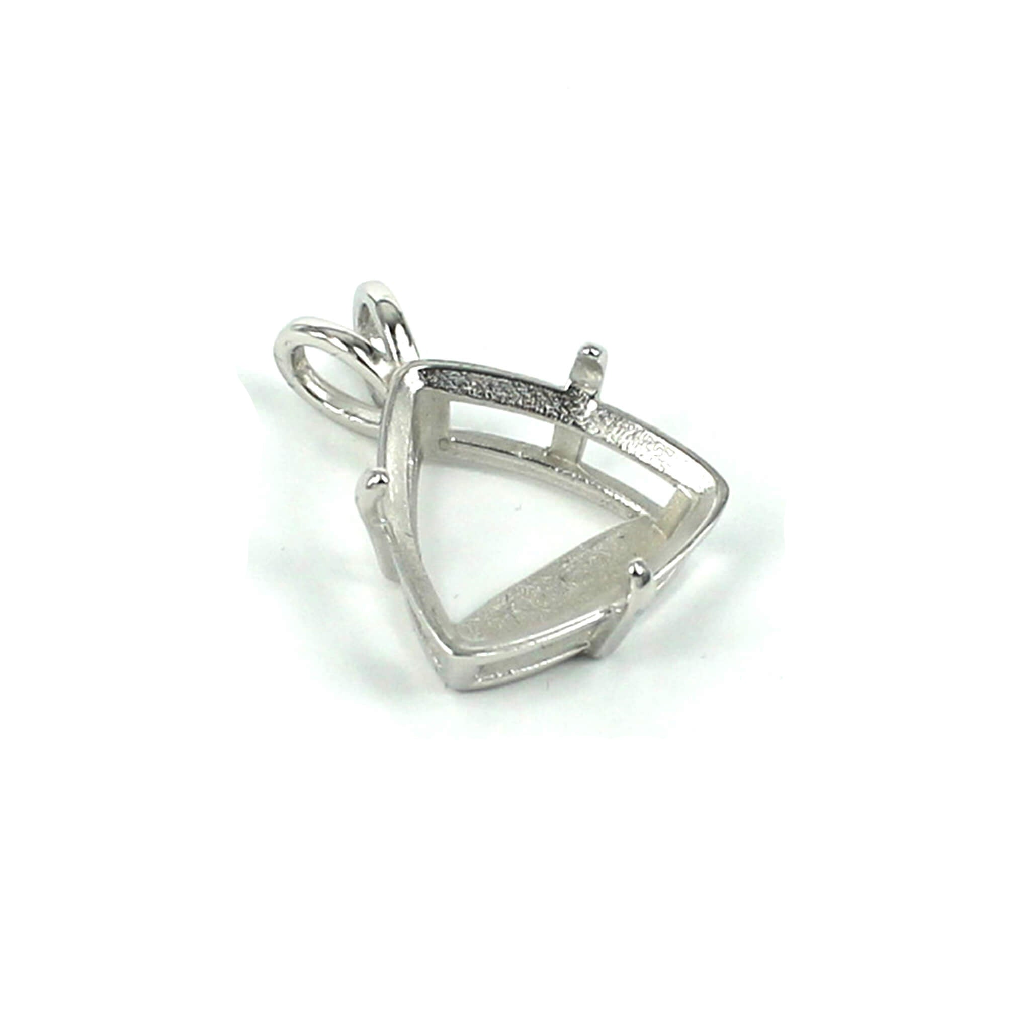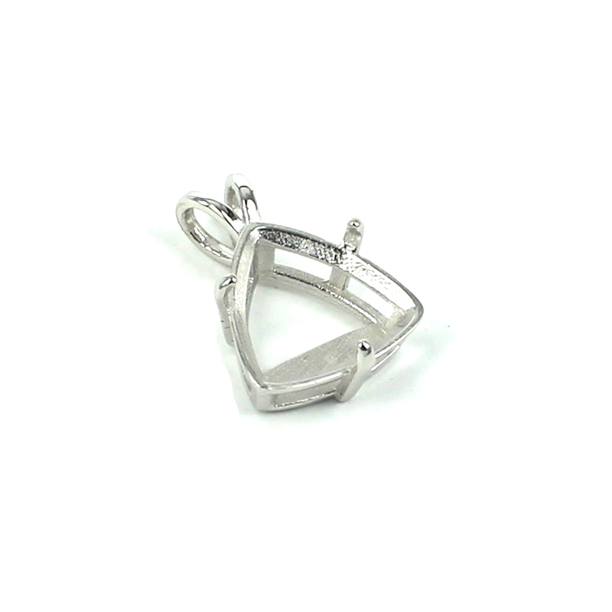 The sterling silver pendant pearl setting has a stylish and smooth triangular basket shape with a deep triangular shape mounting and 3 prongs onto which you can set a triangular shape stone. It features a double loop. It is a popular choice for many jewelers, jewelry designers and artists to add beautiful and a true statement piece to their designs.