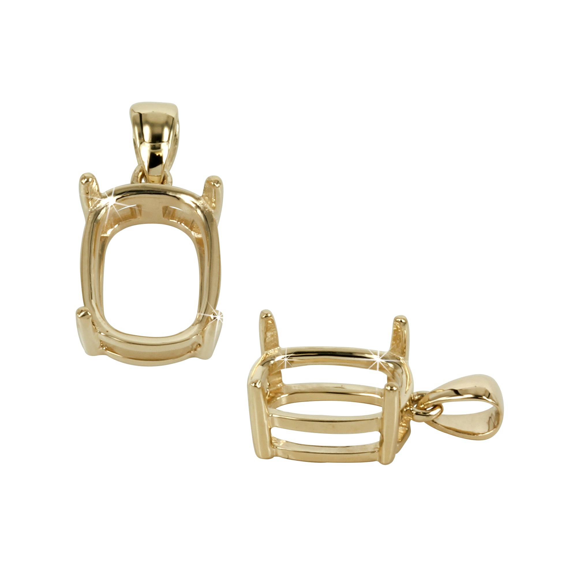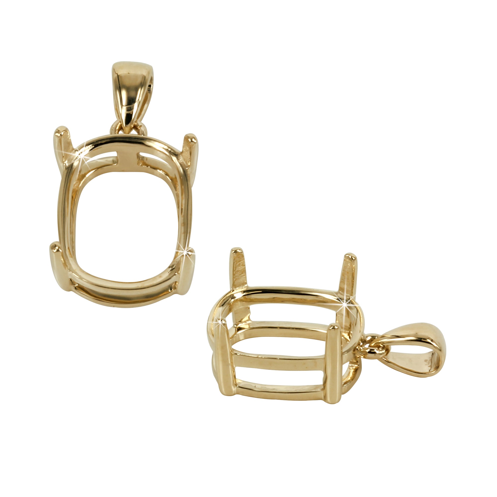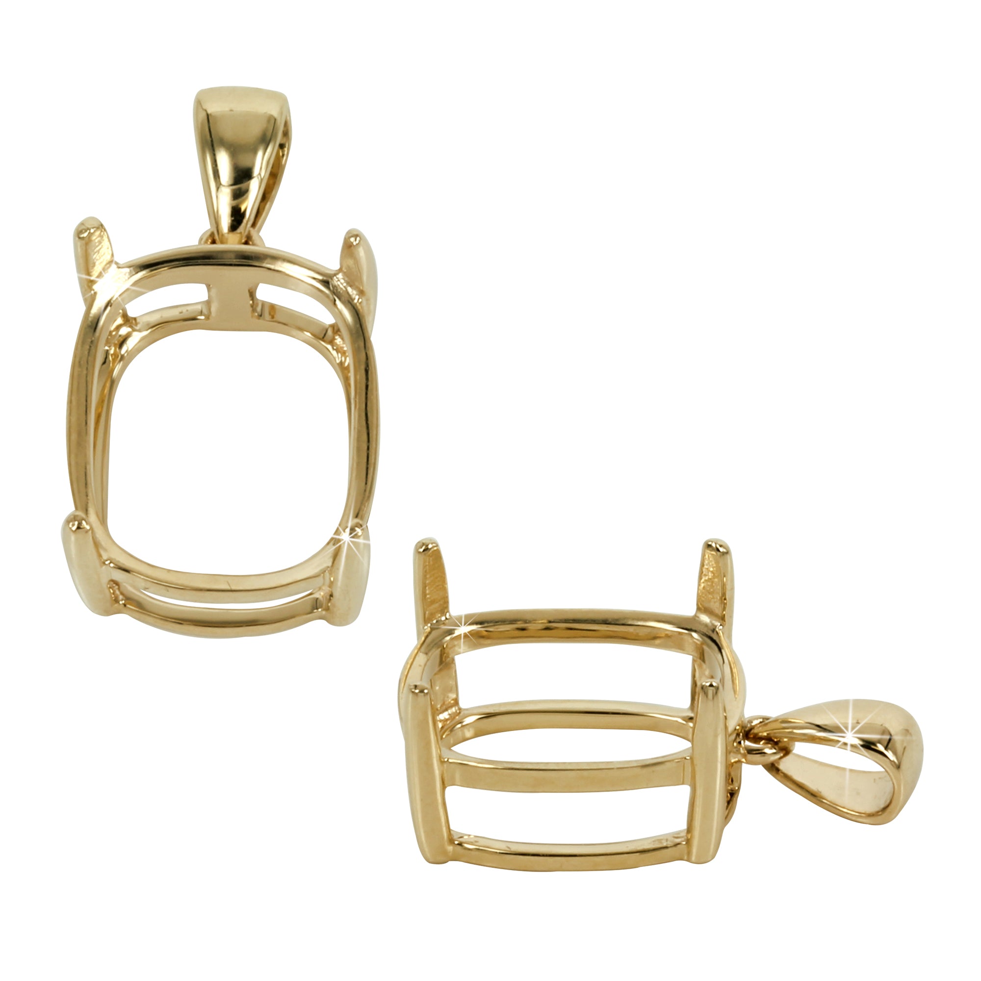 These versatile solid 14K yellow gold (not plated) pendants feature a classic cushion cut basket setting ideally suited for cushion cut stones or cabochons. The hybrid prong style allows for perfect setting whether you use a cabochon or a faceted stone. These are a popular choice for many jewelers, jewelry designers and artists create designs not just brilliant but of timeless elegance.