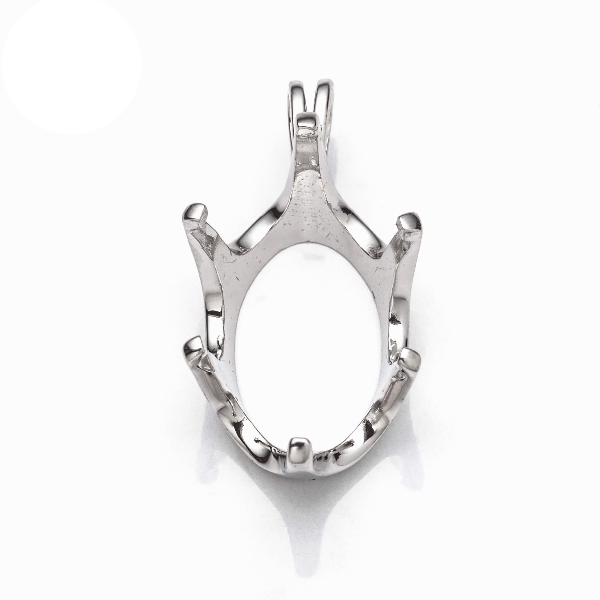 The sterling silver pendant setting has an oval shape with an oval crown style mounting and 6 prongs onto which you would ideally mount an oval cut stone. This deep setting has an open back so it's ideal for stones with extra deep pavilions. The claw mounting is designed slightly smaller than the size of your stone to allow enough tension on the claws so that they snap around your gem when you apply pressure. This setting is not recommended for cabochons. It is a popular choice for many jewelers, jewelry designers and artists to add beautiful and a true statement piece to their designs.