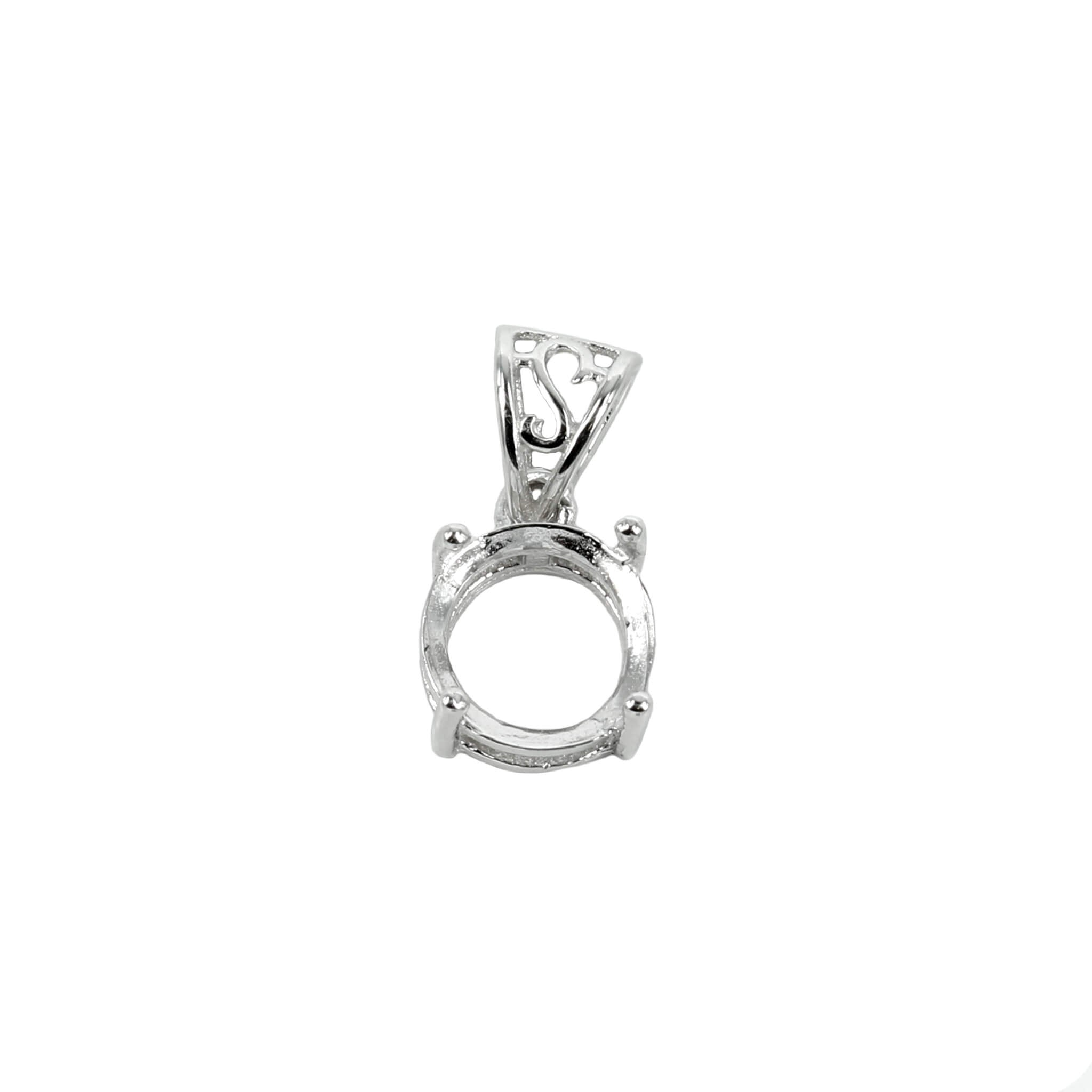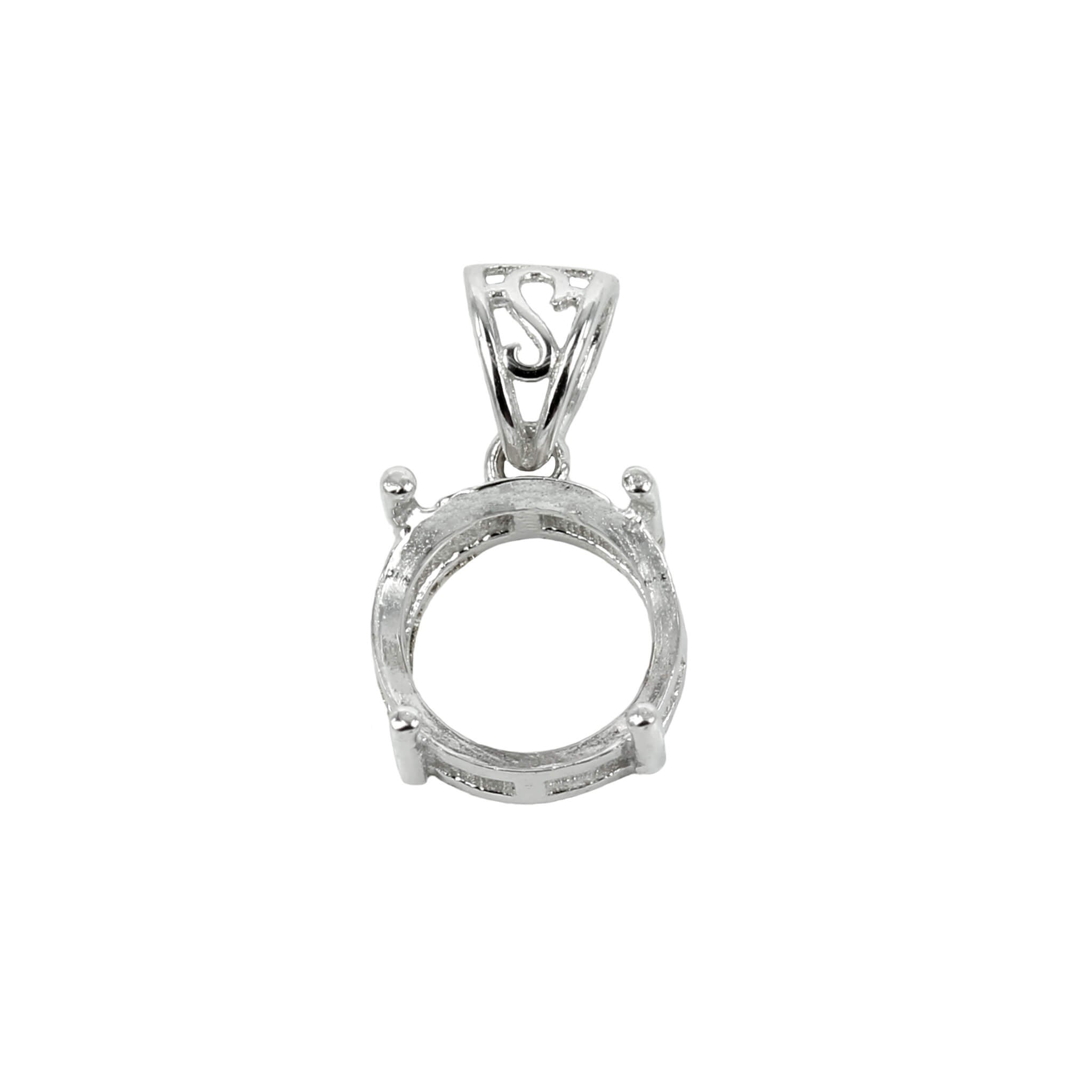 MTP1012 pendant size: 16mm x 10mm ::: setting size: 10mm round cabochon/cut stones ::: weight: 1.41 grams ::: bail thickness: up to 2.9mm