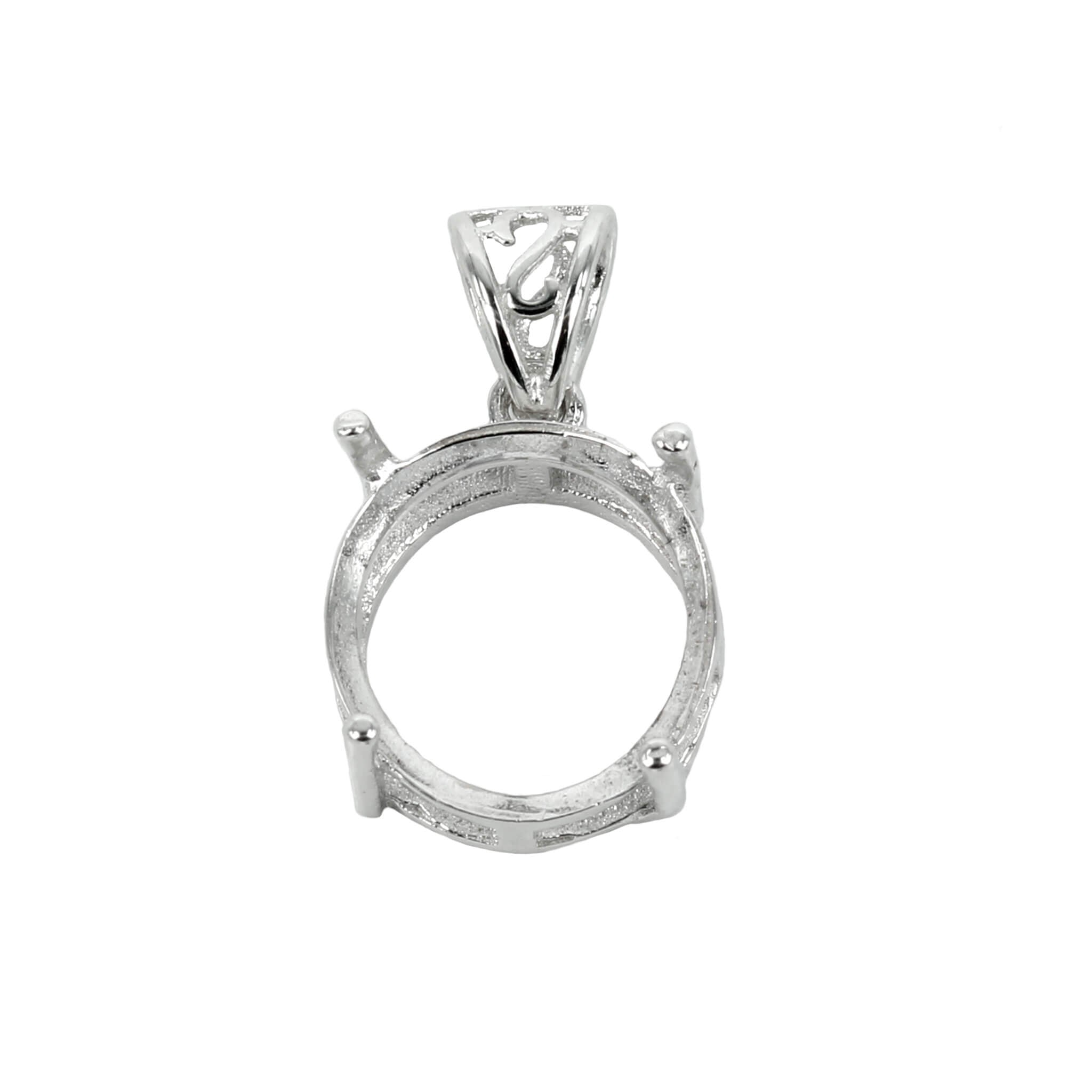 This classic round basket setting pendant in sterling silver features a soldered loop and embellished bail. This piece is a popular choice for many jewelers, jewelry designers and artists to add beautiful and a true statement piece to their designs.